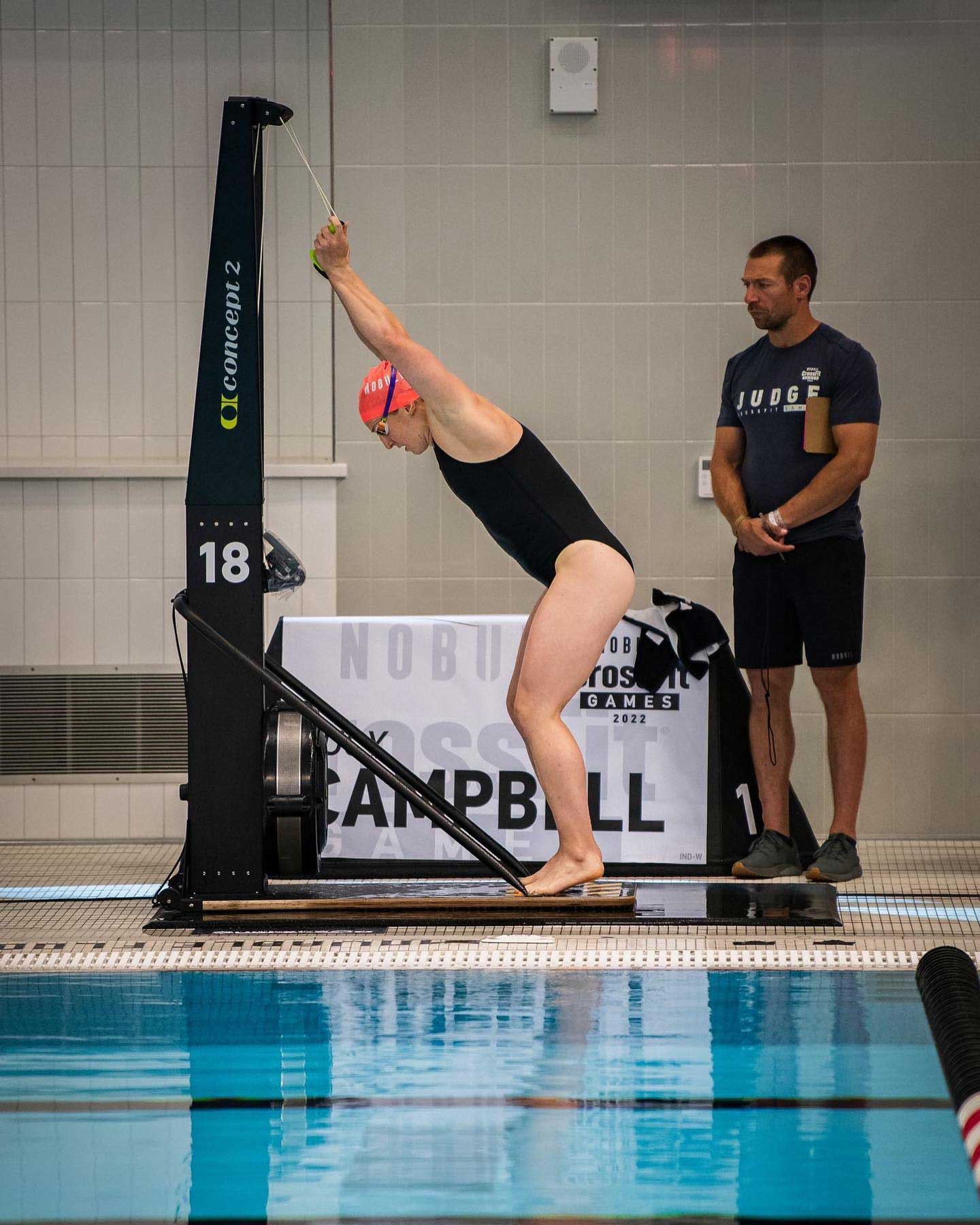 Lucy Campbell es una atleta de CrossFit del Reino Unido que, como rookie (novata), quedó decimosexta en los NOBULL Crossfit Games de este año. En el camino ganó los eventos Rinse ‘N’ Repeat (ver foto) y Jackie Pro. Ambos eventos incluían ergs Concept2. Lucy ha sido nadadora internacional juvenil representando a Escocia y en aguas abiertas ha competido para Gran Bretaña. Ahora ejerce de entrenadora en el Crossfit Nottingham como apoyo a su propio entrenamiento. A continuación Lucy comparte cinco de sus entrenamientos favoritos en el SkiErg.